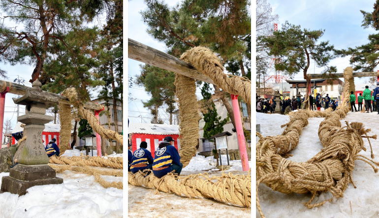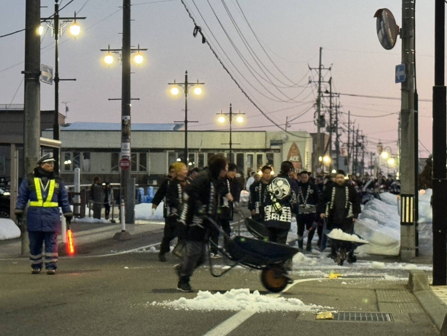 今年の財ふり棒のもみ合いには、なんと大曲中学校の生徒も参加!